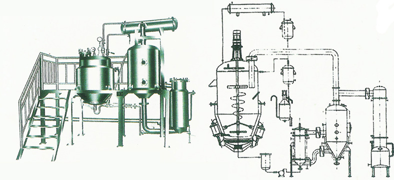 本機組主要由動態(tài)提取罐、蒸發(fā)濃縮器及工藝管道等組成,集動態(tài)熱回流提取、真空濃縮、溶劑回收為一體,并能在密閉狀態(tài)下連續(xù)而同步地進行提取與濃縮,濃縮時產(chǎn)生的溶劑蒸汽,經(jīng)冷凝后回流到提取罐,并可用二次蒸汽對提取中物料再加熱,進行熱回流動態(tài)提取,適用于中藥、生物、食品、輕工等行業(yè)水和有機溶劑的常溫及60℃左右的低溫提取,具有投資少、效率高等優(yōu)點。